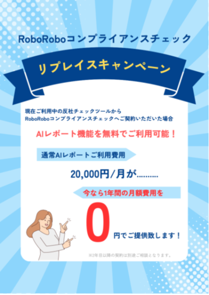 RoboRoboコンプライアンスチェック、2月末までの期間限定で『リプレイスキャンペーン』を開催